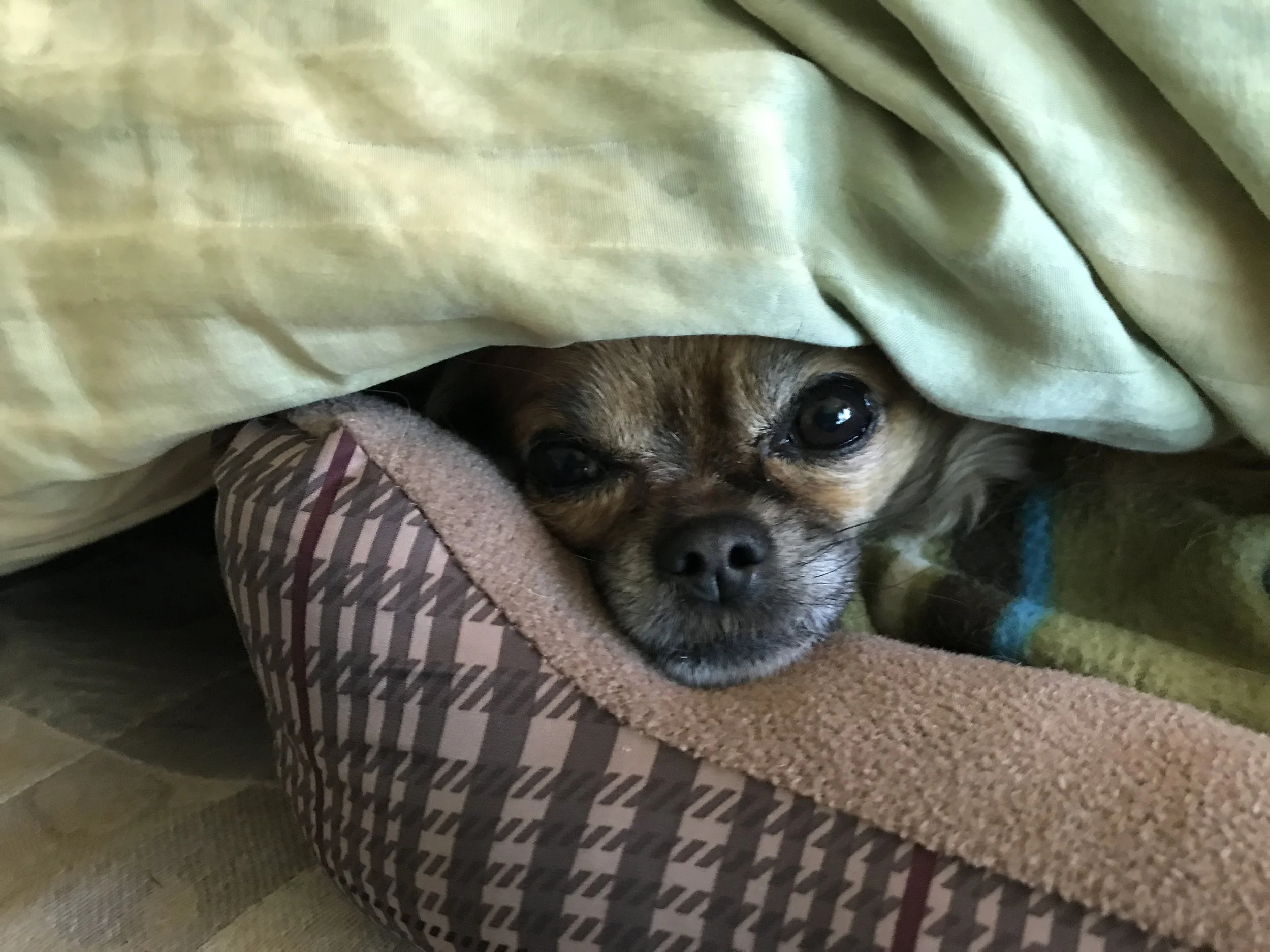 Give your dog a soft bed or blanket that’s always available. Yes, there are dog bed, pillows and blankets throughout our home. That’s a given.